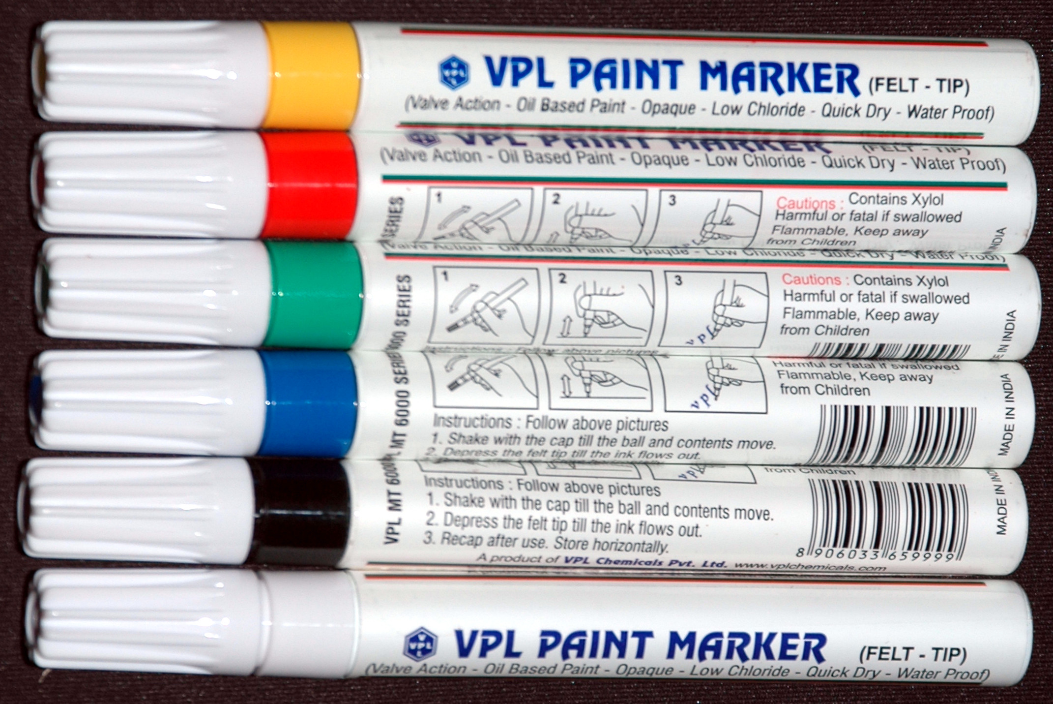 The marker has high quality reversible nib. Permanent marking, lettering, coding or numbering can be made using these marker pens.